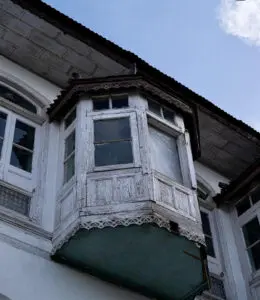Above and in the below picture from Aali Kdal, Srinagar, you will find Roman Revival architecture such as spires, buttresses, pointed arch door surrounds and windows and decorative ironwork; medieval influences including, steeply pitched roofs.